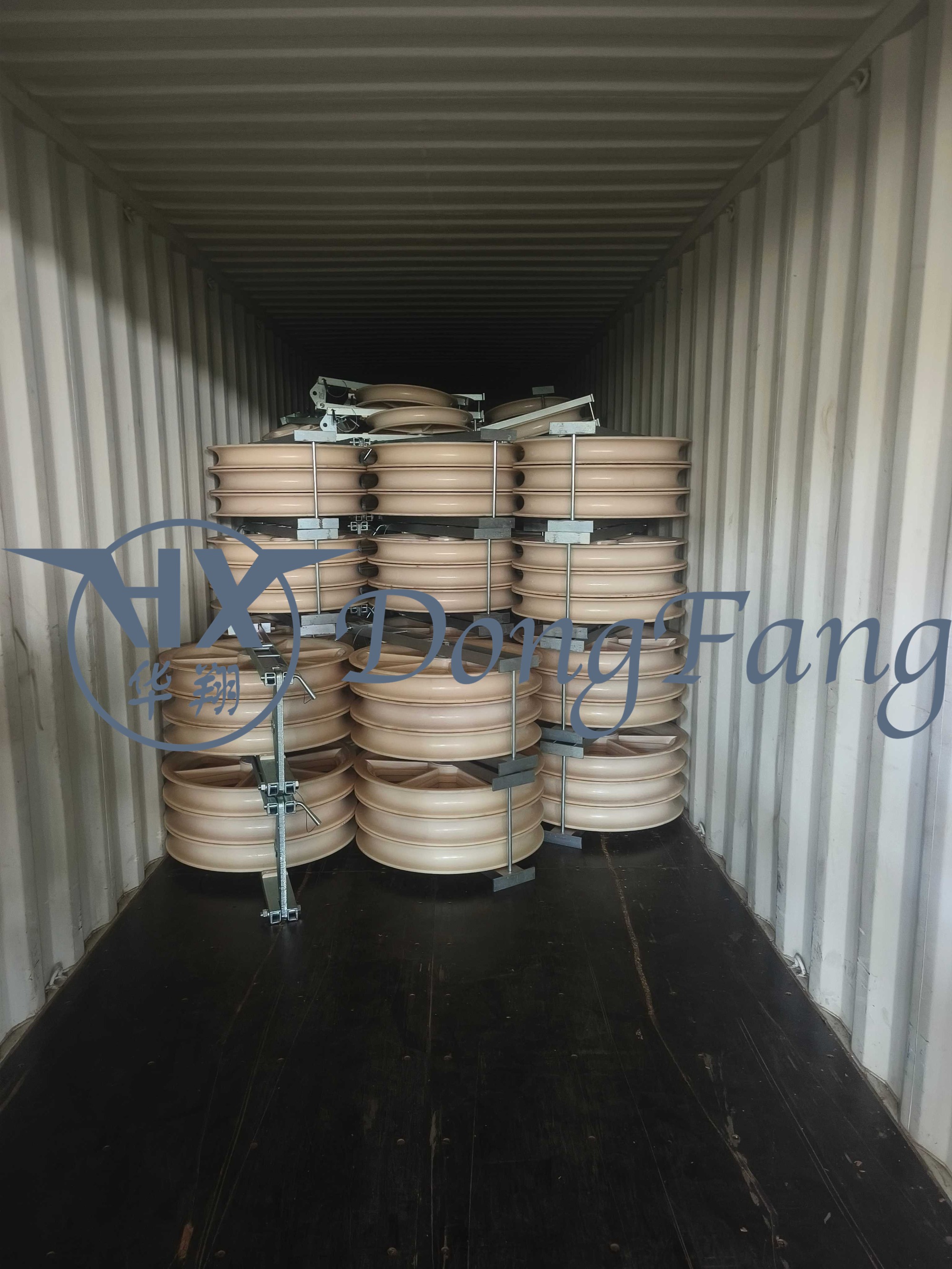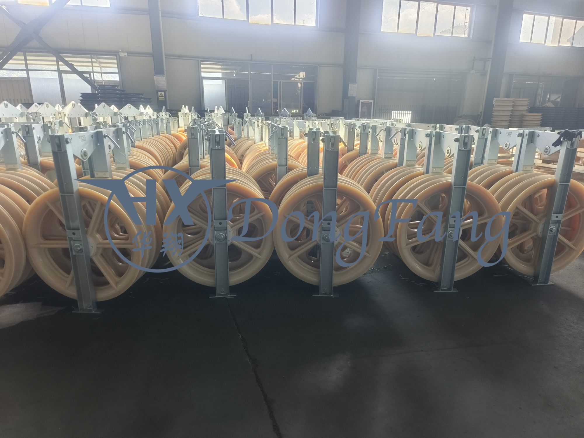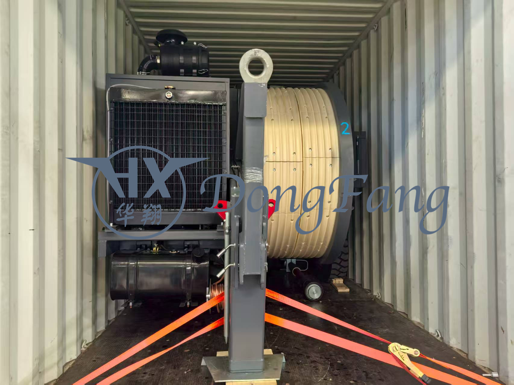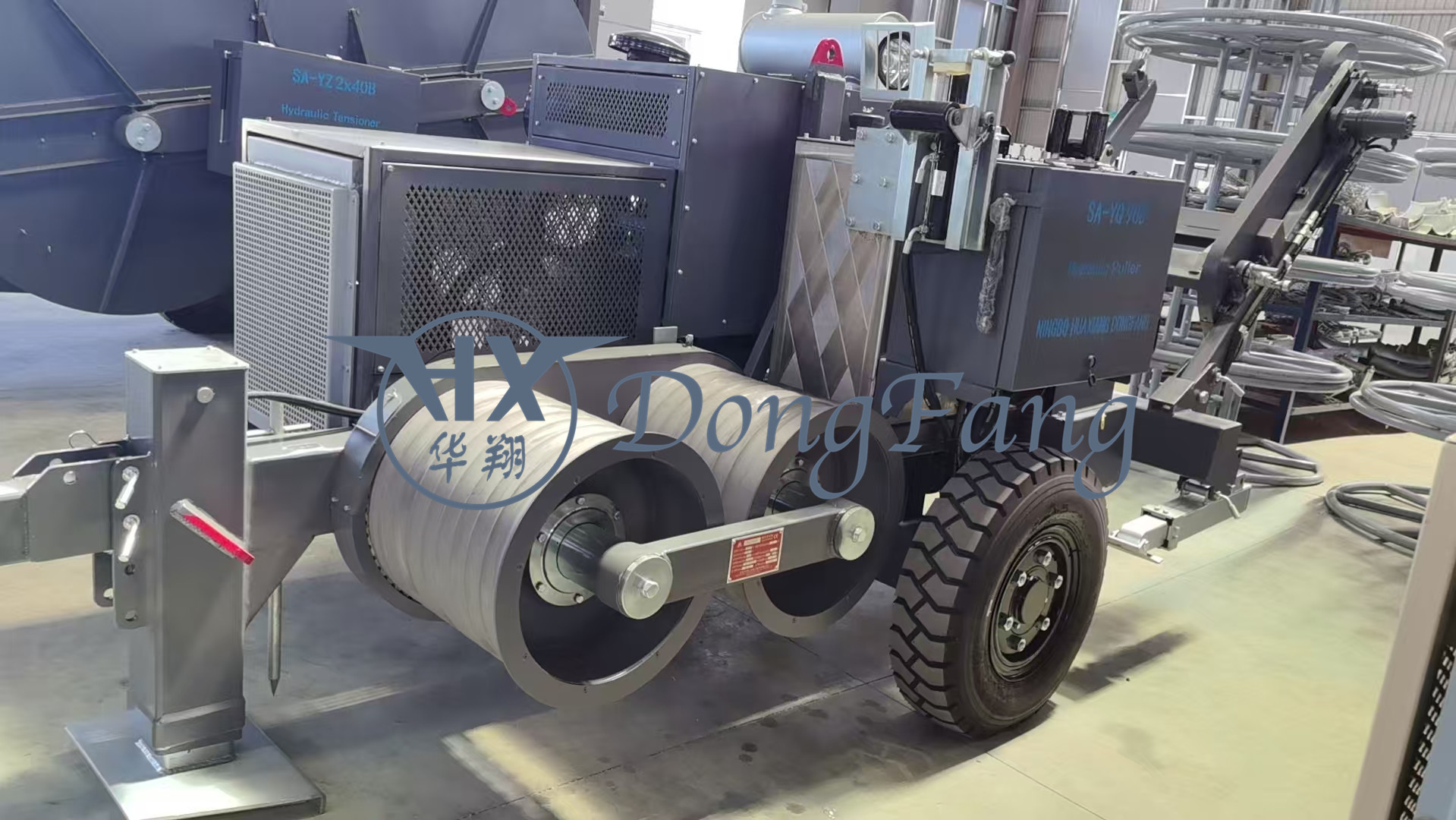 We delivered one set of 2 conductors stringing equipment and accessory tools to our customer in South American. They are used for stringing 2 bundled Bluejay conductors on overhead transmission line. The set include hydraulic puller 9 ton SA-YQ90D, hydraulic tensioner 8 ton SA-YZ2X40B, hydraulic reel elevator with motor SIPZ-7K, stringing blocks SHSQN822, OPGW stringing blocks SHDN660, anti twising steel wire rope 18mm, come along clamps SKL-50, hydraulic press with pump QY-125, motorised winch JJQ-50B, space cart SFS1-450 etc.